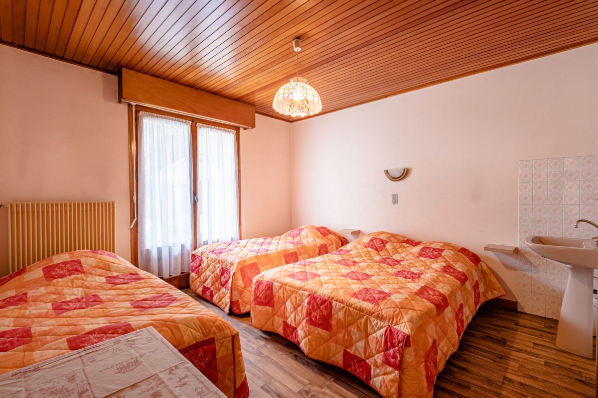 Chambre 1 : 1 lit 2 places et 3 lits 1 personne, lavabo